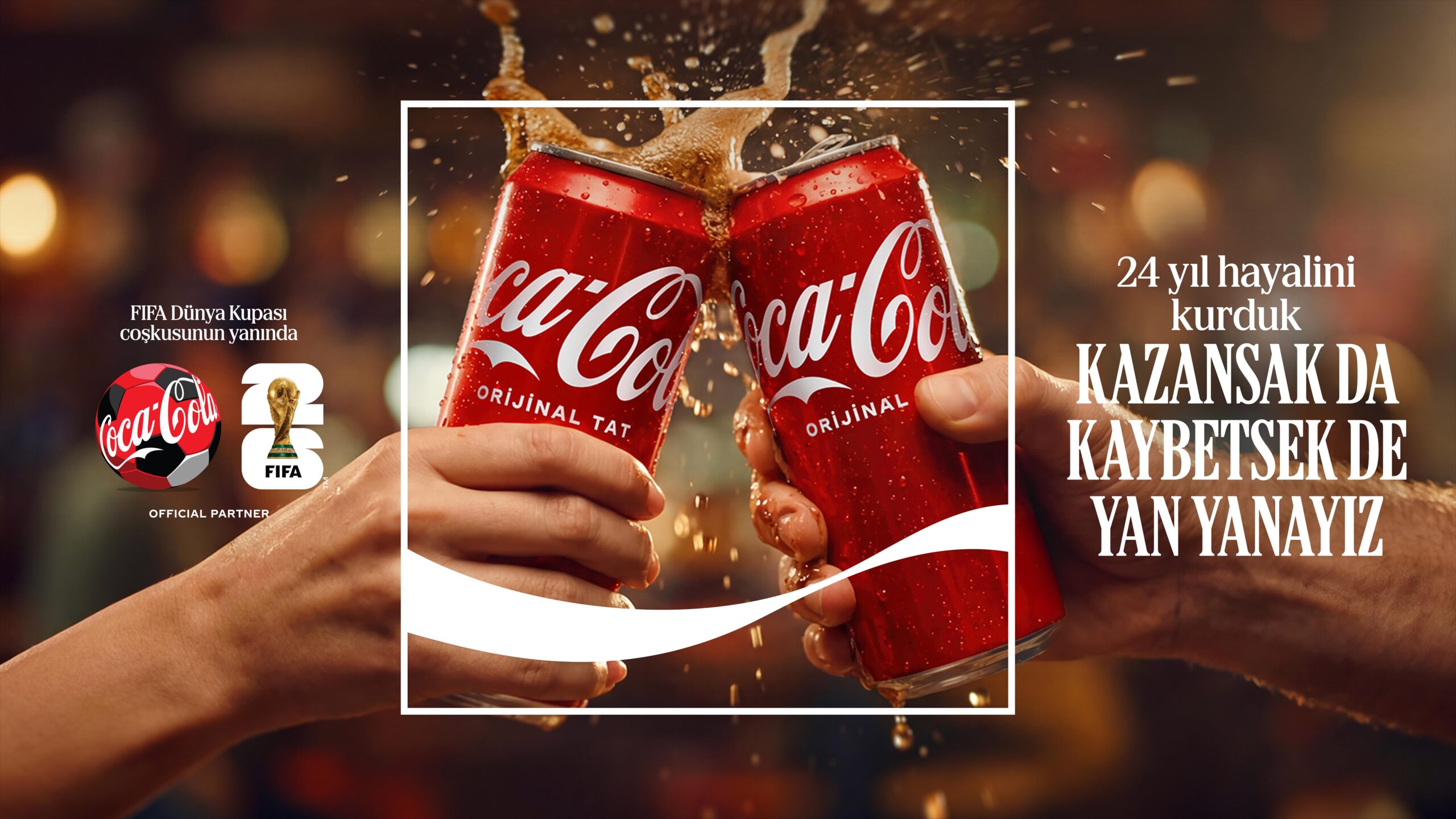 FIFA Dünya Kupası 2026™ yolunda, Coca-Cola 24 yıl sonra yeniden Türk taraftarının heyecanına ortak oluyor. The Coca-Cola Company, FIFA sponsorluğunun 50. yılını kutlarken, Dünya Kupası yolunda Türk taraftarının birliğine ve heyecanına eşlik ediyor.